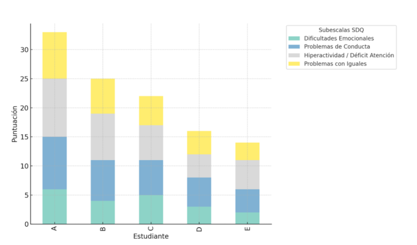 Predominan las conductas prosociales (ayuda, colaboración, amabilidad). Se observan dificultades leves en atención, nerviosismo y autorregulación emocional. Algunos alumnos presentan señales puntuales de aislamiento o sensibilidad emocional.